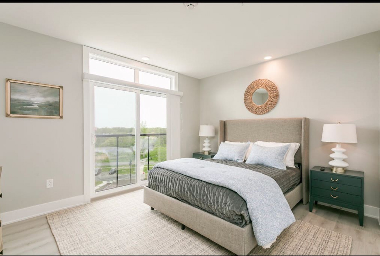 My husband and I had the pleasure of staying at #508 for our wedding anniversary weekend in late September. The condo was easy to find and was exactly as described - maybe even better! Shaun was super responsive from the moment I asked about staying all the way through checkout. Kitchen had everything you could need to make yourself a delicious meal, which we did (homemade pizza to watch the Bills game!). The main bed is super soft and the bathroom is HUGE! Although the weather wasn't great so we didn't venture out much except for a couple of bike rides, we didn't mind because the condo made us feel wrapped in luxury. All the benefits of an AirBnB with hotel amenities. We will 100% be back!- Erin C , Posted: 10/8/2023