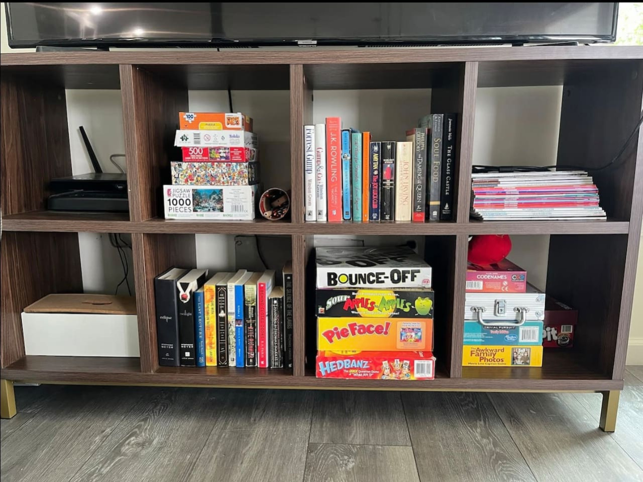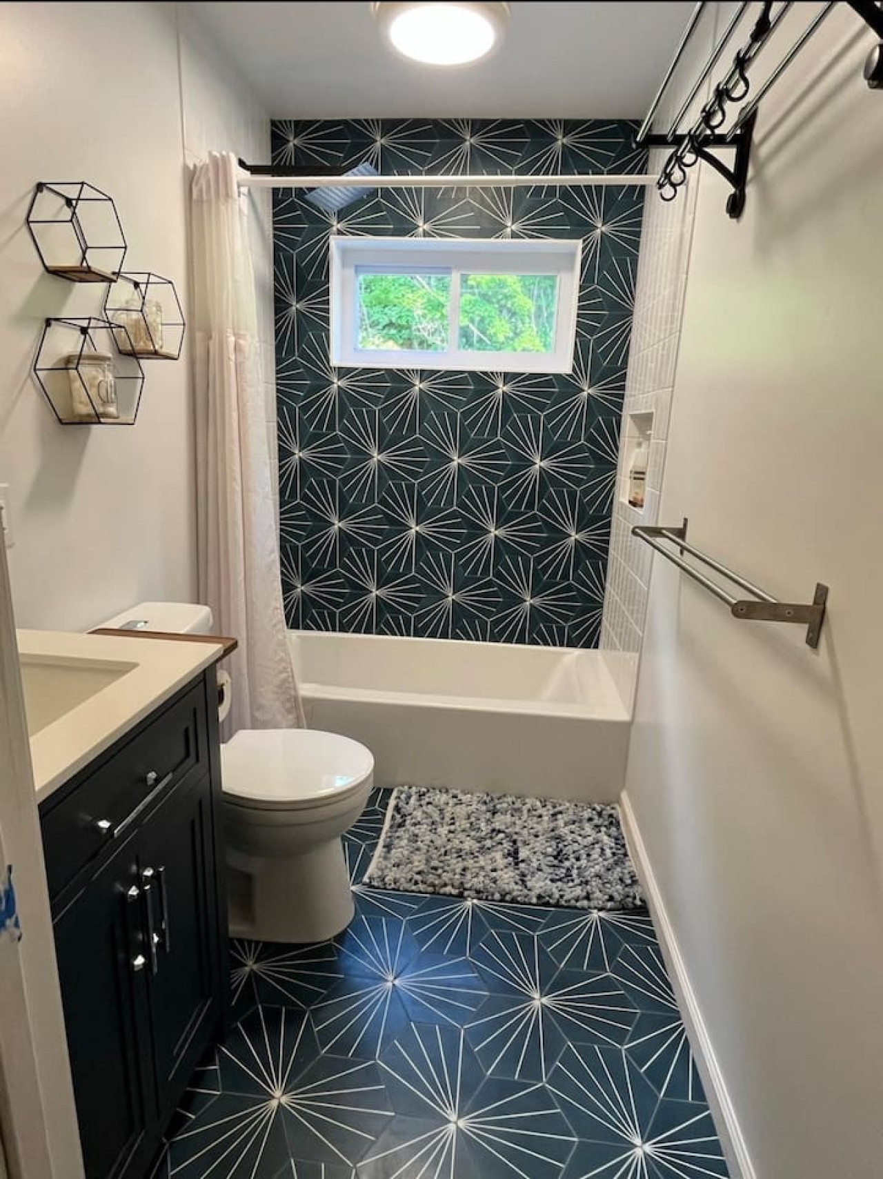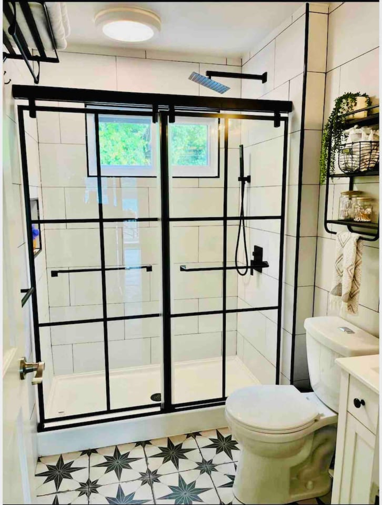 HBOMax, ESPN, etc. that you can log into with your credentials), games, and books for rainy days; dining table as well as kitchen island with seating for 4, full bathroom with modern matte black shower doors,