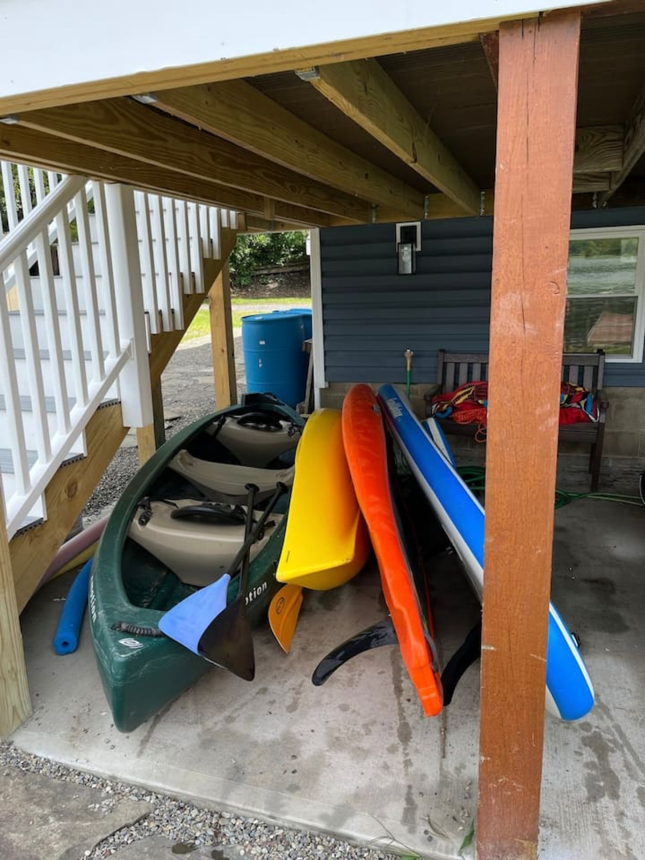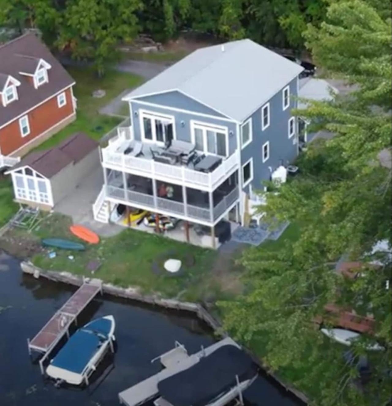 We stayed here with a group of 13 and there was plenty of room for everyone. They had a canoe, paddles boards, a kayak. The house is gorgeous. Peaceful. Neighbors were very nice. The enclosed porch was so nice to hang out late and night and keep you protected from bugs. It was spotless when we arrived and the kitchen was fully equipped. The grill and the stone too grill were awesome. Shaun was great host. Quick to respond to any questions! Would recommended for a family trip or a getaway with friends!- Gianna C , Posted: 5/15/2023