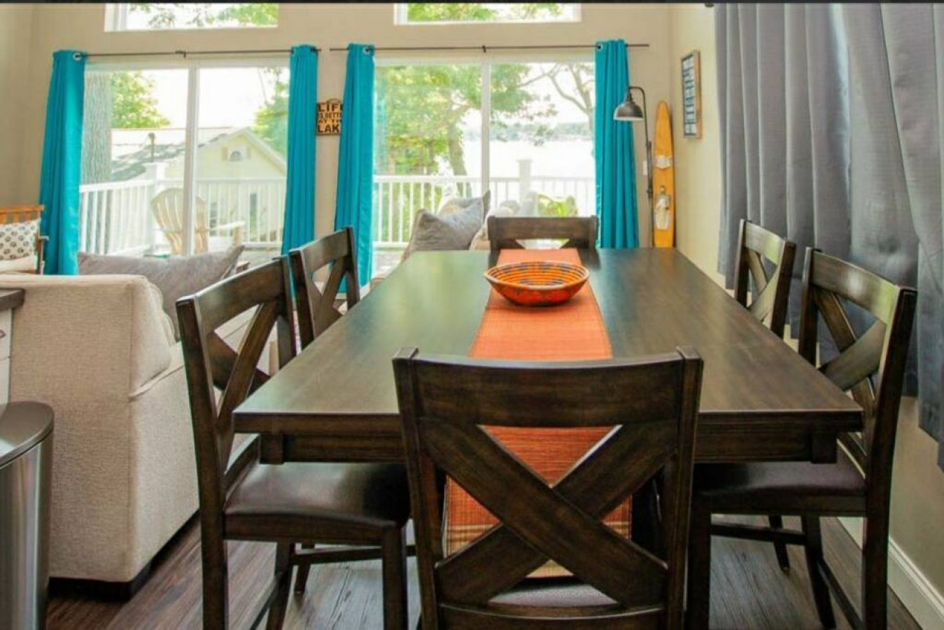 Amazing place right on the lake. Plenty of room, and beds available for 8 adults. The fenced in yard was perfect for the dog.