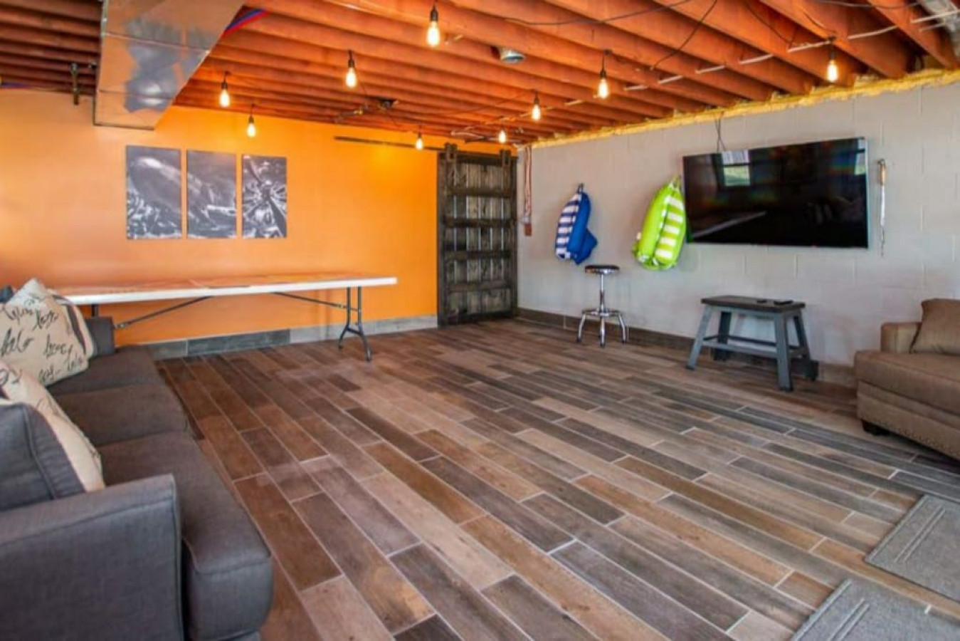 The kayaks, canoe, life jackets, floating sling, video game w/PacMan & Galaga, spacious deck, balcony, fire pit, and parking spaces make this a great place to stay. I’ll definitely request it again.