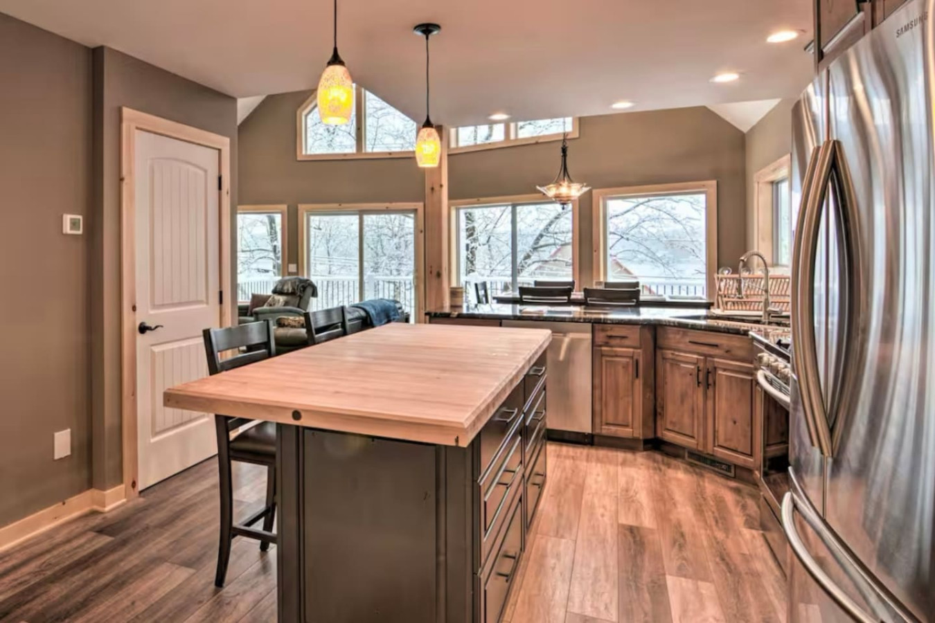 INDOOR LIVING: Newly built, picture windows, open layout, ample seating, 4 flat-screen Smart TVs w/ Roku, dining table